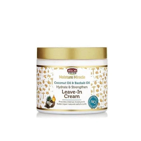 The African Pride Moisture Miracle Coconut Milk & Honey Leave-In Cream is a lightweight blend of hydrating Coconut Milk & African Honey that replenishes moisture, adds shine and softens; leaving hair manageable and naturally defined.
