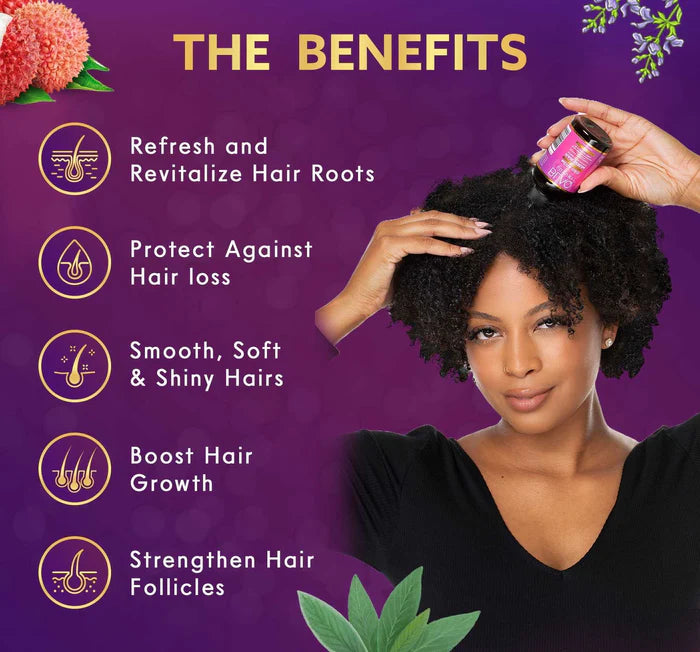 Blaq Luxury® presents a hair serum that can be incorporated into your daily hair care routine. This formula contains no harmful chemicals and is both safe and effective. Packed with over 25 essential oils and nutrients, this serum nourishes the scalp, promotes hair growth, and strengthens hair follicles. Its lightweight and non-greasy formula leaves your scalp feeling revitalized. Use it as a hot oil treatment and experience the benefits for all hair types and textures.