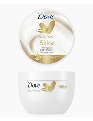 Dove Body Love Silky Pampering Body Cream, you can lavish yourself with premium skin care. This body cream contains our unique NutriDUO Complex, a combination of skin-natural nutrients and rich essential oils, which penetrates deep within the skin's layers whilst preventing moisture loss from the surface.