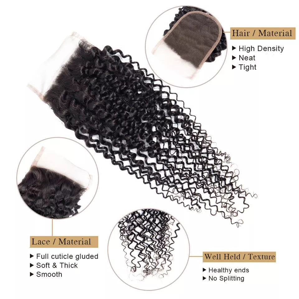 DM Brazilian Hair 4x4 Lace Closure Jerry Curl Natural Colour