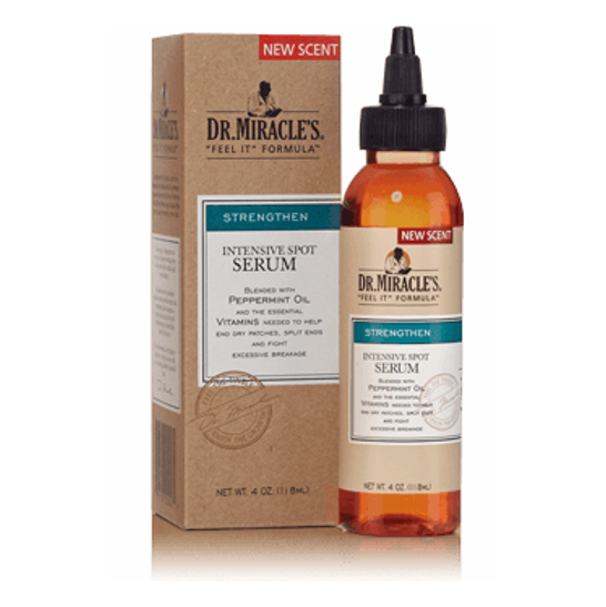 We all have areas that could use a little extra help. Use Dr. Miracle’s Intensive Spot Serum on your problem scalp areas and on those hair areas where split ends, slow growth, and breakage are a real challenge. Intensive Spot Serum provides conditioning, strengthening, moisture and shine to relaxed, braided, weaved or natural hair.