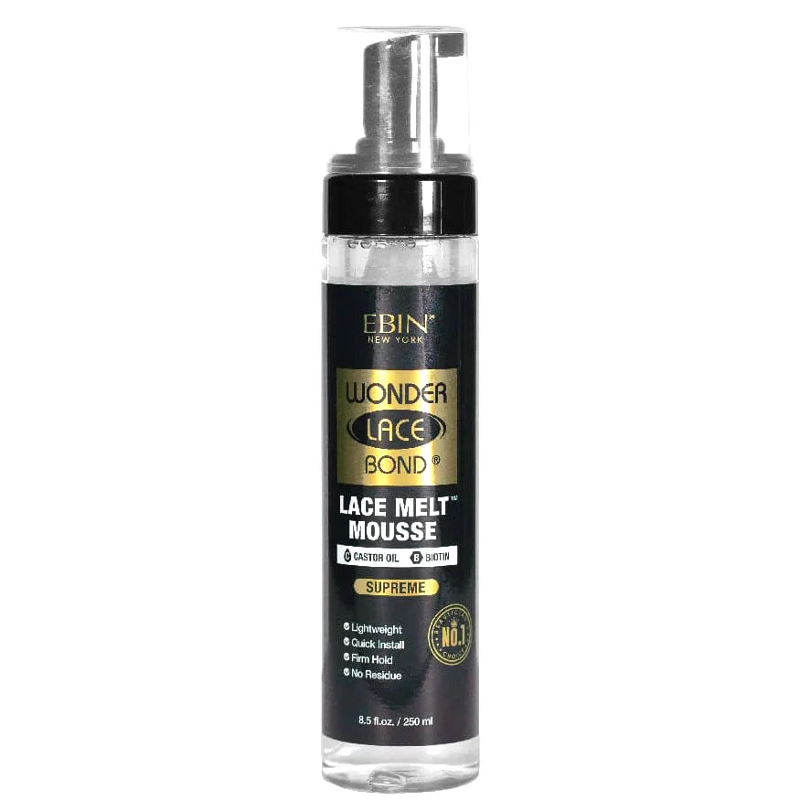Introducing our Wonder Lace Bond Lace Melt Mousse, a game-changing product that takes wig application to the next level. This innovative mousse is water based and specially formulated with the powerful combination of castor oil and biotin, designed to not only secure your wig in place but also provide it with essential care. The castor oil strengthens wig lace and promotes healthy hair growth, while biotin nourishes and revitalizes, resulting in a flawless wig installation that looks healthier, shinier, and more natural. Experience the confidence of a secure lace melt with the added benefit of natural ingredients that support both your wig and your style.