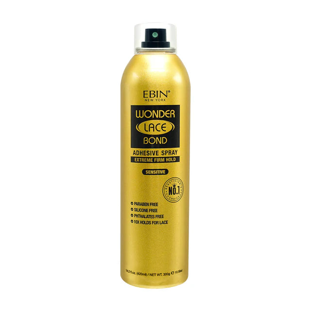 Experience the ultimate in secure and flawless wig application with the EBIN NEW YORK Wonder Lace Adhesive Spray, the top choice for securing lace front wigs with unmatched strength and flexibility. This advanced lace wig adhesive spray delivers an extra strong hold, keeping your lace front wig firmly in place through humidity, sweat, and all-day wear. Our Wonder Lace Adhesive Spray boasts a residue-free finish, drying clear to maintain a natural, seamless look without the sticky mess. Formulated with a gentle, non-irritating formula, it's suitable for all skin types, providing a safe and comfortable experience for every user. The easy-to-use spray nozzle offers precise and even application, making it simple to achieve a flawless and secure wig installation every time. Elevate your wig game with the Wonder Lace Adhesive Spray and enjoy a worry-free, flawless look that leaves you confident and fabulous all day long.