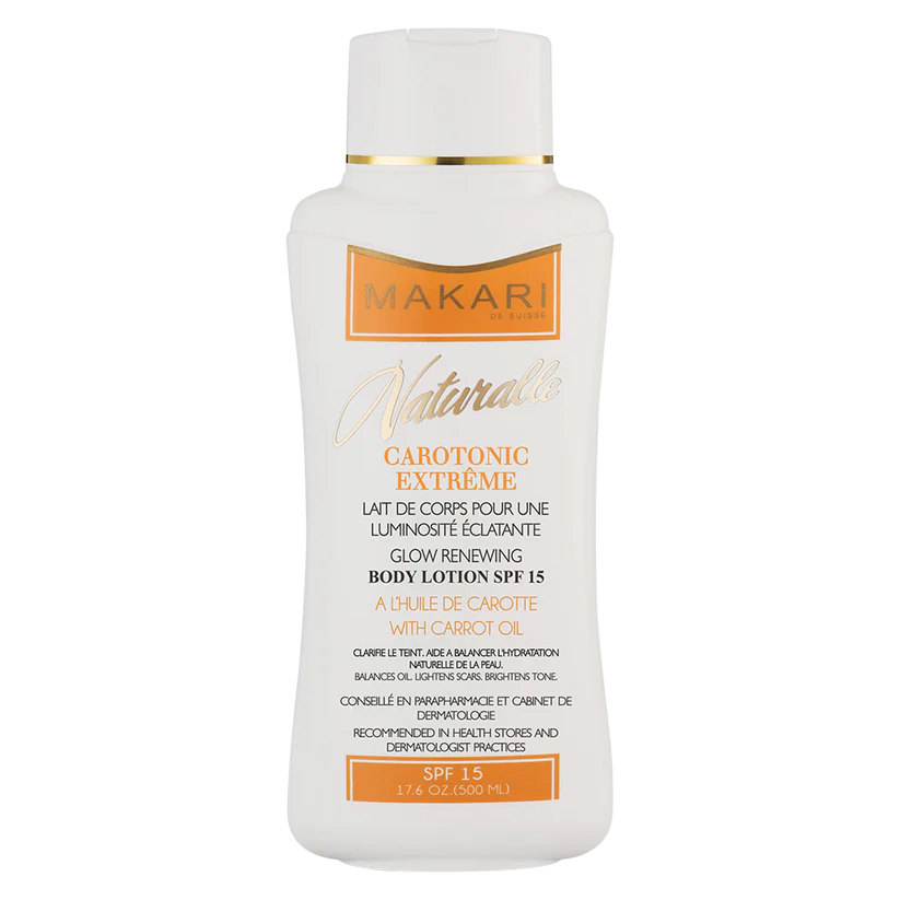 Makari Carotonic Extreme Body Lotion treats skin to moisturizing botanicals that balance skin, fade acne blemishes and scars, resist the signs of aging and promote healthy radiance.