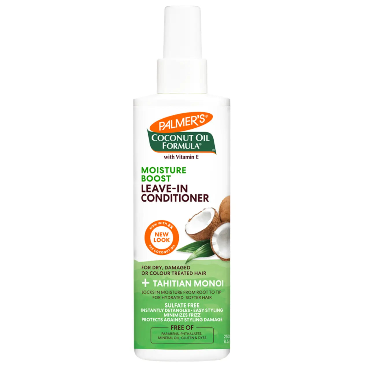 Palmer’s® Coconut Oil Formula™ products contain ethically and sustainably sourced Coconut Oil and Tahitian Monoȉ, infused with Tiaré flower petals. These raw, natural ingredients deeply hydrate, repair damage and give hair incredible shine. Palmer’s® Coconut Oil Leave In Conditioner instantly detangles, putting an end to tugging and pulling. With a few sprays hair has instant slip and silkiness for easier comb-through and styling. Hair nourishing emollients fortify hair, control frizz, reduce split ends and give hair healthy-looking shine.