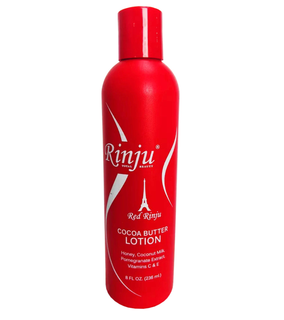 Rnju cocoa butter lotion moisturizes dry skin and protects against damage from the sun & the environment. its rich non greasy formula soothes skin instantly. The cocoa butter fades scars and marks on the skin. vitamins, coconut milk & pomegranate extract heal and hydrate rough dry skin