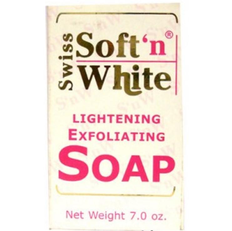 Swiss Soft'n White lightening exfoliating soap gently rubs your skin to remove impurities and dead cells. It contains apricot pits and natural ingredients that help cleanse, soften and keep your skin radiant and smooth.
